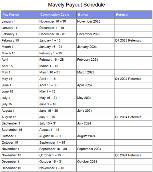 You will receive payouts on your commission, bonuses, referral's, contests and other earnings through Mavely. The commission you earn by linking to Amazon and any other Mavely brand partners will be included in your payouts which are issued twice per month (schedule below).